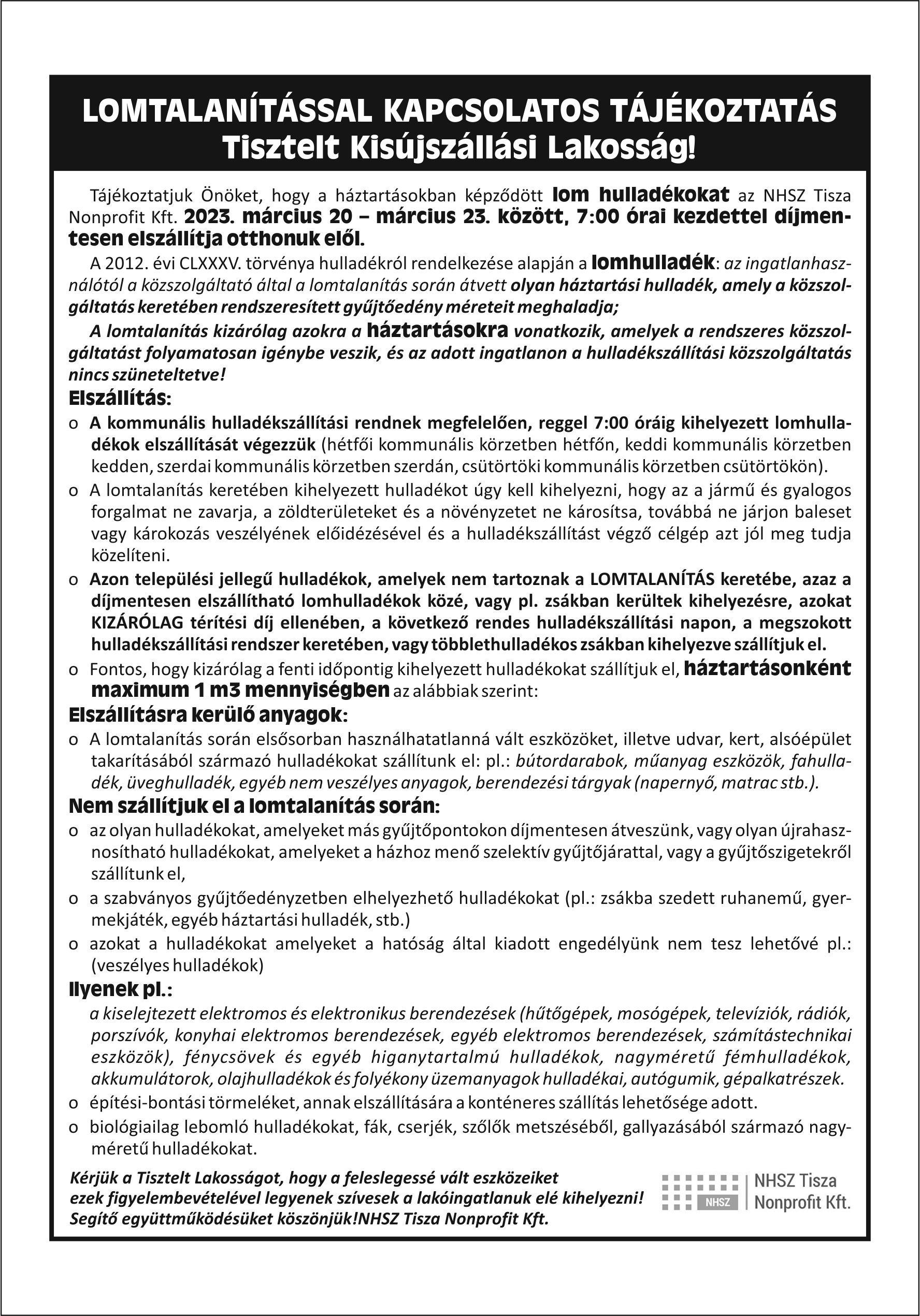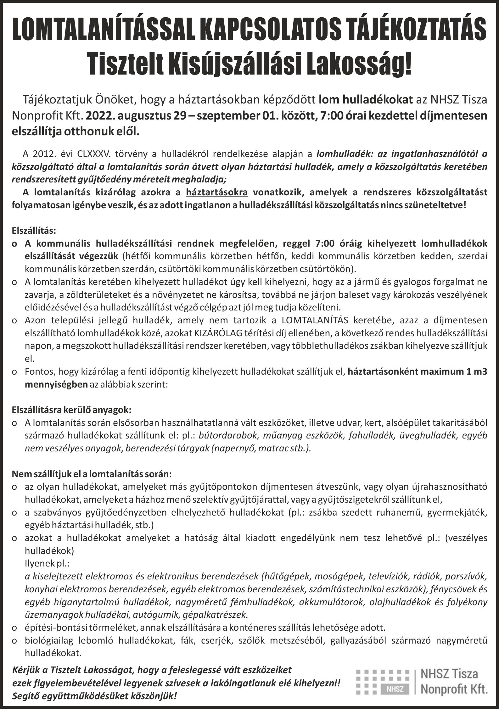 Lomtalanítás 2022. augusztus 29 - szeptember 1. között
