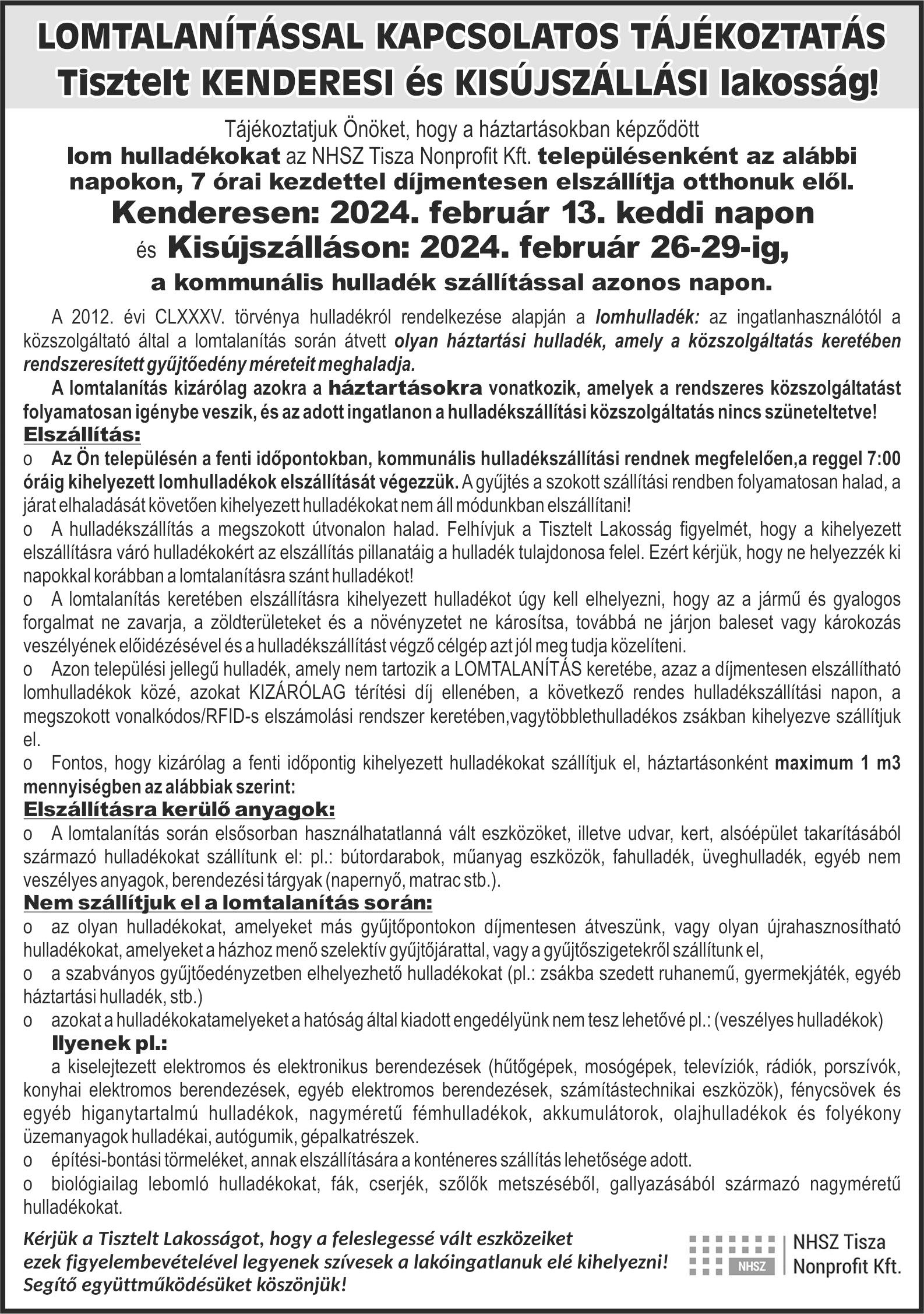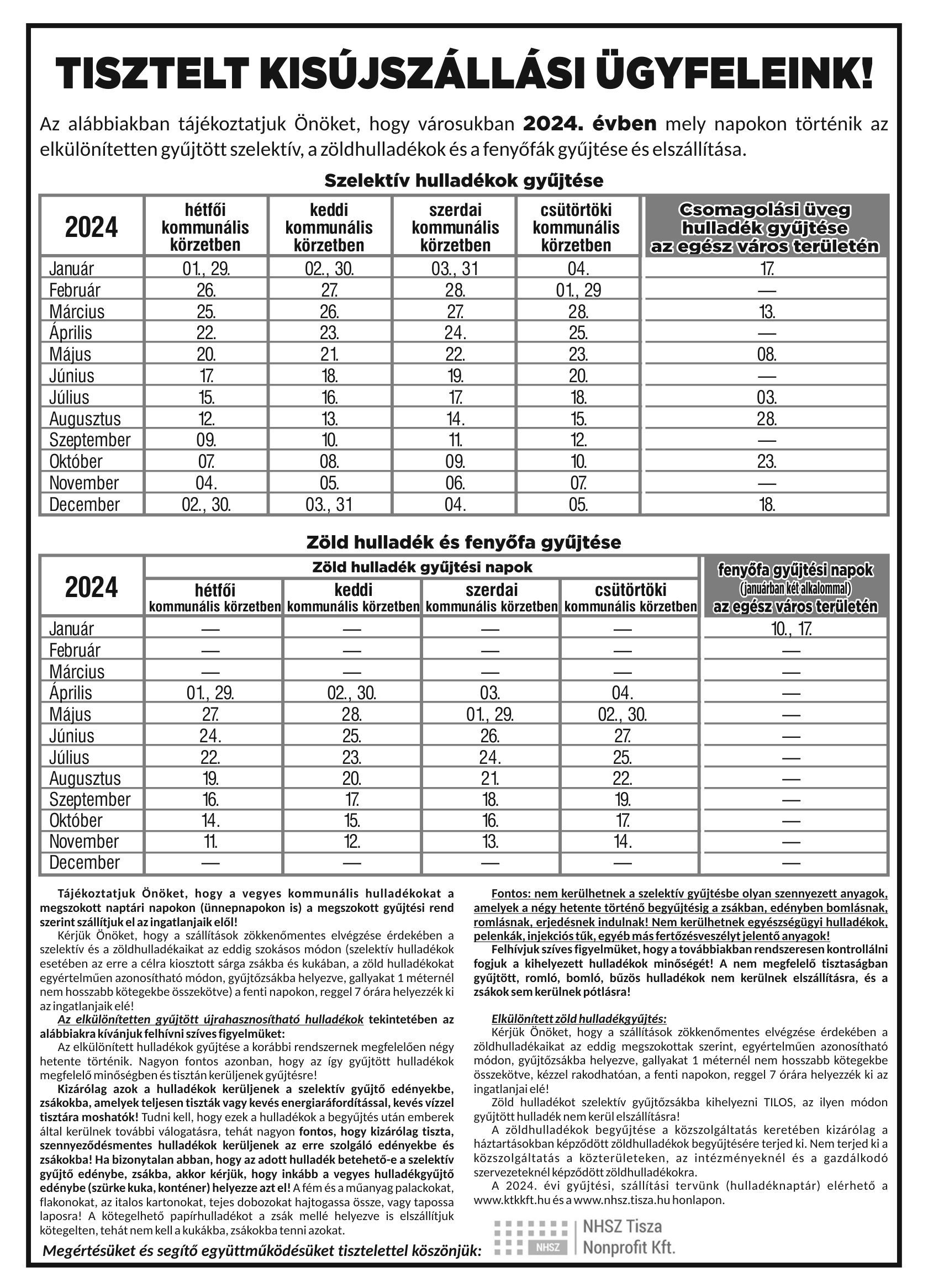 Szelektív-, zöld hulladék és fenyőfa gyűjtés 2024