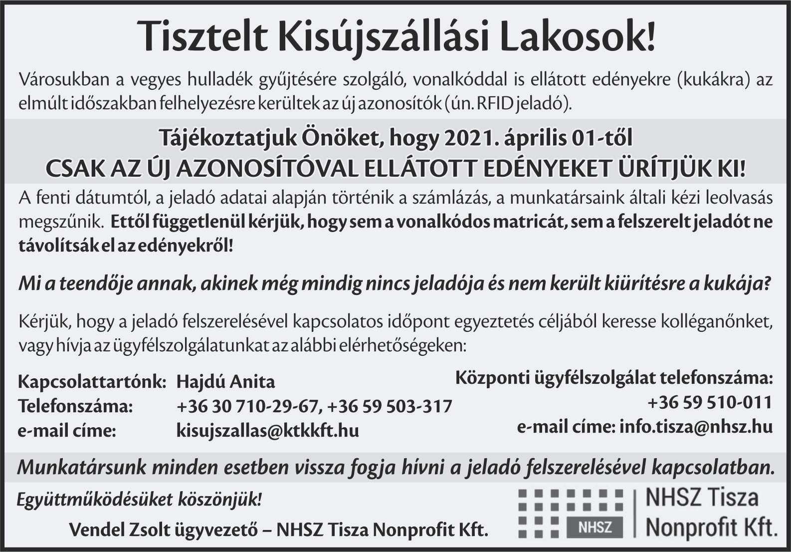 Tájékoztatjuk Önöket, hogy 2021. április 1-től csak az új azonosítóval ellátott hulladékgyűjtő edényeket ürítjük ki! Az ezzel kapcsolatos bővebb információkat elolvashatják a Tájékoztató linken: